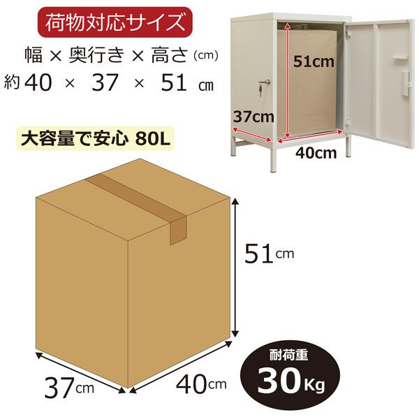 ネット通販などの配達物を不在時でも受け取れる、大容量80Lの宅配ボックスです