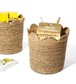 【自然素材の紙ロープ編み収納バスケット】手提しやすいハンドル付きデザインで、リビングのスナックやおもちゃの整理に最適です。丈夫な編み目とナチュラルな風合いがインテリアに馴染み、中身が見えにくい深型設計がお部屋をスッキリ演出。洗濯機対応可能で清潔維持も簡単、多目的に使える万能アイテムです