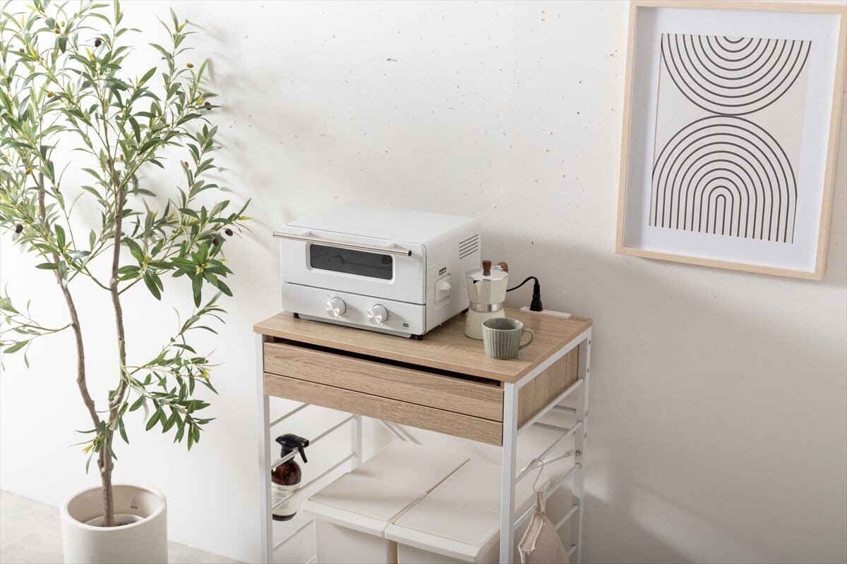 ゴミ箱上を収納・作業スペースとして有効的に活用する『Cammy(キャミー)』ゴミ箱上レンジラック