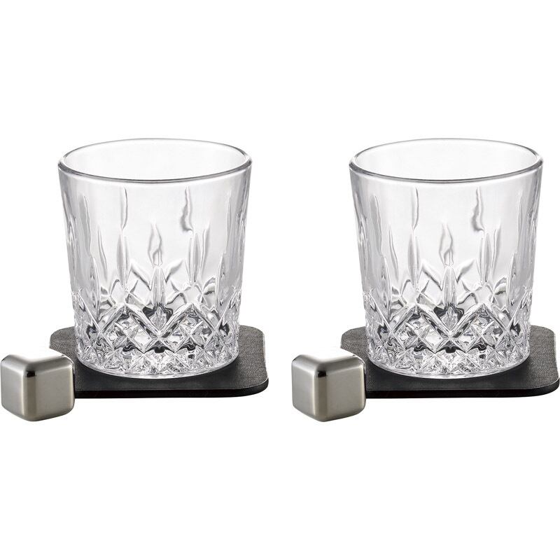 美しい輝きを放つロックグラスと、冷凍庫で冷やして氷の代わりとして使えるフローズンメタルのセット。