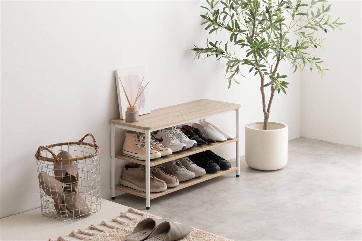 3段のラックは、靴を数足しっかりと収納できるスペースを確保しています。オープンデザインなので、靴の選びやすさも抜群!玄関の限られたスペースを有効活用し、日常の生活をより快適にしてくれるアイテムです。
