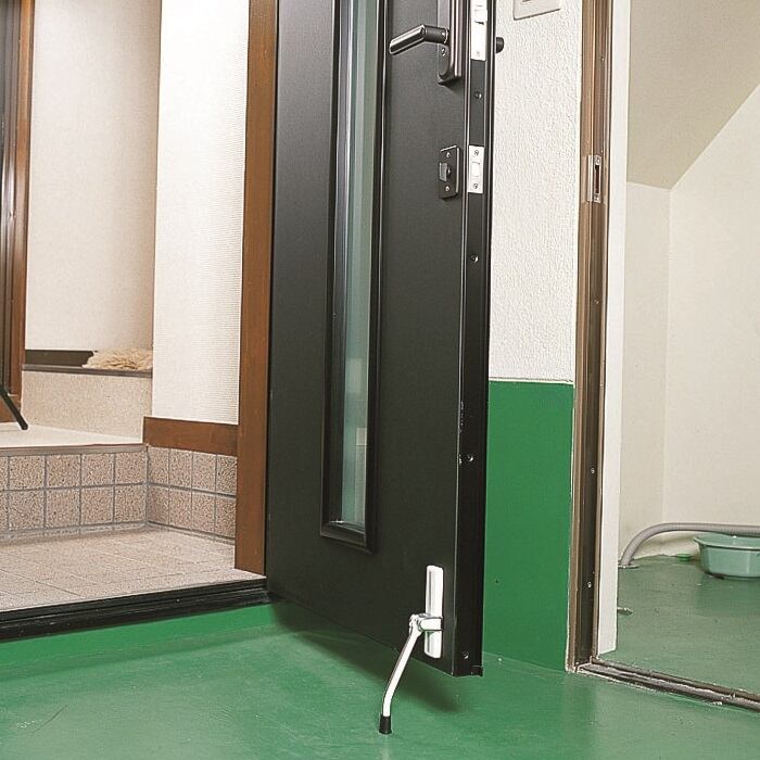 ちょっとドアを開けたままにしたい時に便利なドアストッパー。本製品は、シンプルなデザインで使い勝手が良いロングセラー製品です。鉄製のドアなら、そのまま取り付けができ、その他の素材のドアでも、付属パーツを使えば使用可能です。高さ調節ができるので、段差のある場所でも使用できます。
