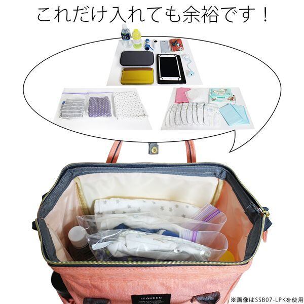 大きめのマザーズリュックサックです。大容量で荷物をまとめるのに役立つこと間違いなしです!ポケットなど収納スペースがいくつもついている多機能で、かばんの中を整理しやすい作りをしています。