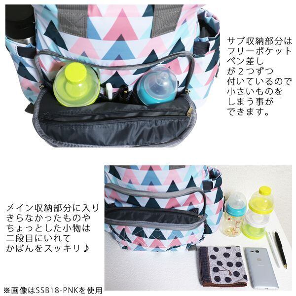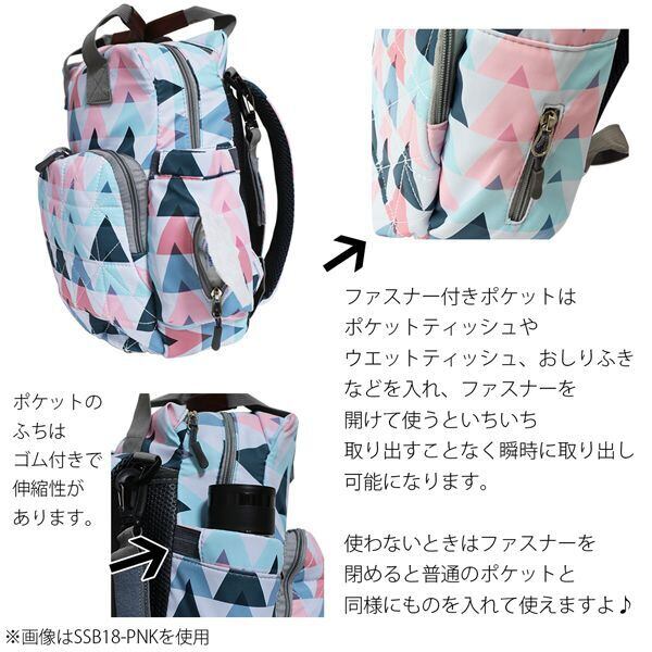 カラーは、ピンク/ブルー・幾何学柄(BG-SSB18xPNKxF)をご用意です。写真にある他の色を選べません。