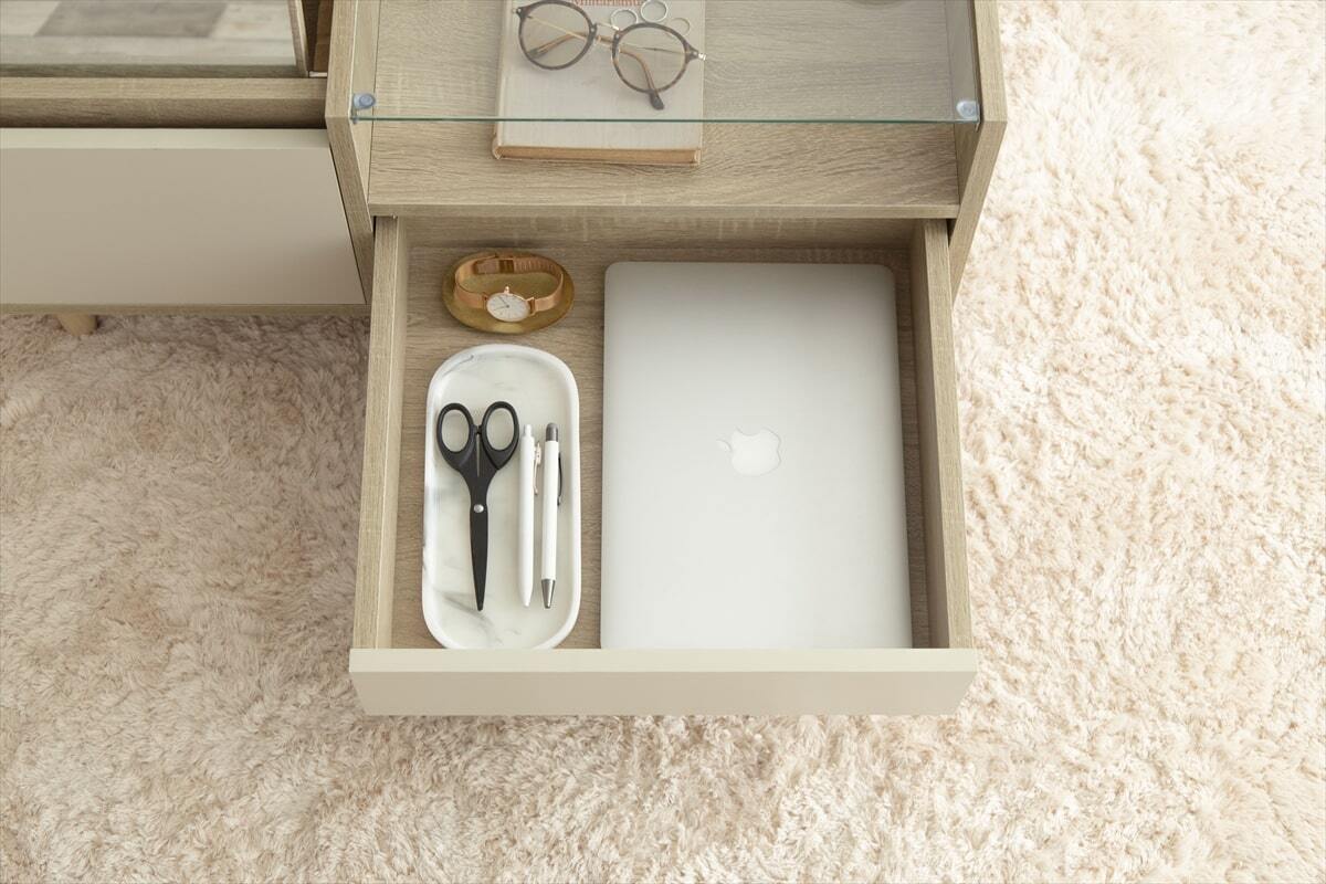 木目とホワイトのバイカラーが印象的な『Erin(エリン)』シリーズのディスプレイ収納付きドレッサーテーブルが新登場!自宅でのビューティーケアを、より快適に・スタイリッシュにサポートします。