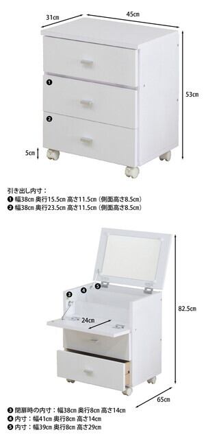 ◆広いトップテーブルは、化粧品や小物をしっかり収納可能!