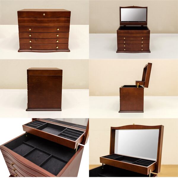 このジュエリーボックスは、洗練されたデザインが特徴です。収納性に優れ、美しいインテリアアイテムとしても最適です!