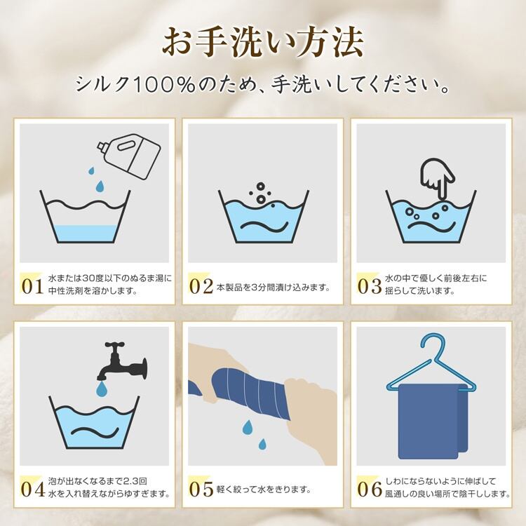 シルク素材は繊細ですが、適切なお手入れをすれば長持ちします。洗濯機で洗うことも可能ですが、ネットに入れて優しく洗うことをお勧めします。お手入れが簡単なため、清潔を保ちやすいです。