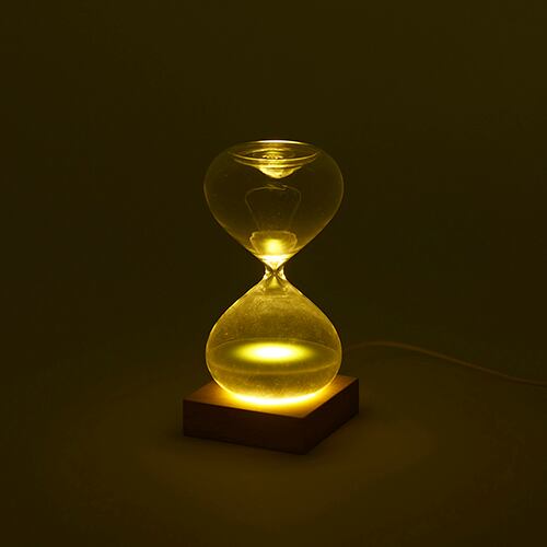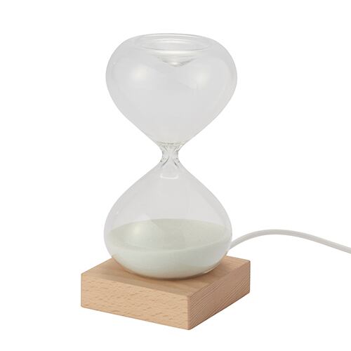 美しいフォルムが魅力のLED付砂時計15分計。白い砂がさらさらと静かに落ちていく様子をのんびりと眺めたり、ふと目にした瞬間に癒されたり。天然木から温かなオレンジ色のライトを照らせばたちまち幻想的なムードに。