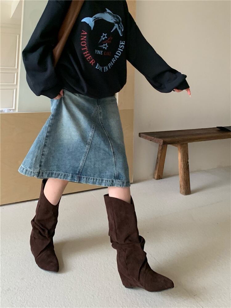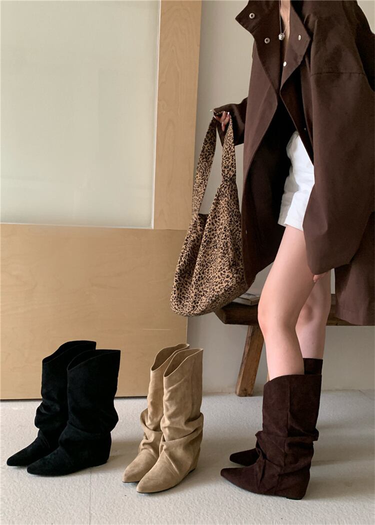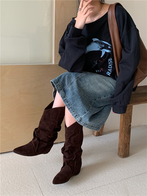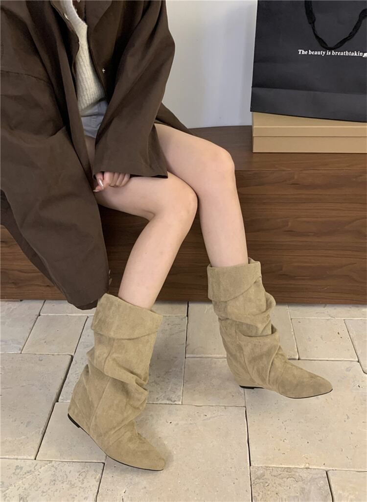 プリーツ加工 ロングブーツ インソールヒール ウェッジソール 2025新作