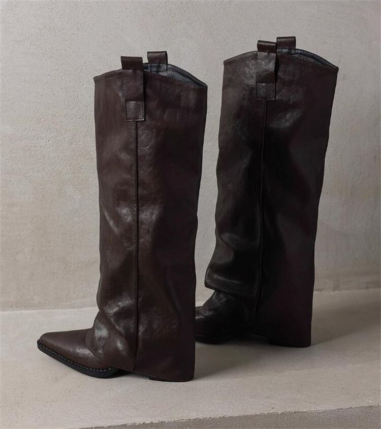ラウンドトゥではなく尖ったつま先のクラシックハイブーツ