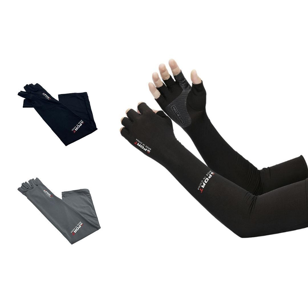 アームスリーブ 両手用 ブラックorグレー 指出し スポーツロゴ