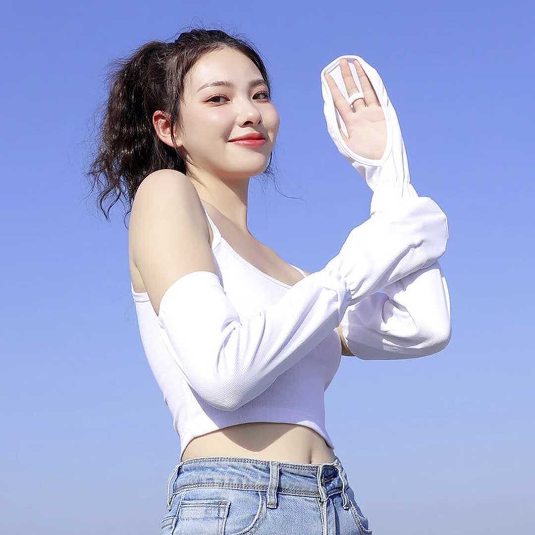 アームスリーブ 両手用 手の甲まで隠れる ホワイトorグレー アーム