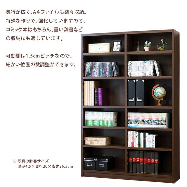 ◆特殊な作りで棚を強化しているので、コミック本はもちろん、重い辞書などの収納にも適しています。