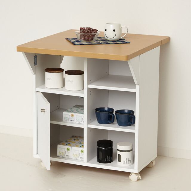 天板広がるバタ式キッチンワゴン!安心の日本製です。