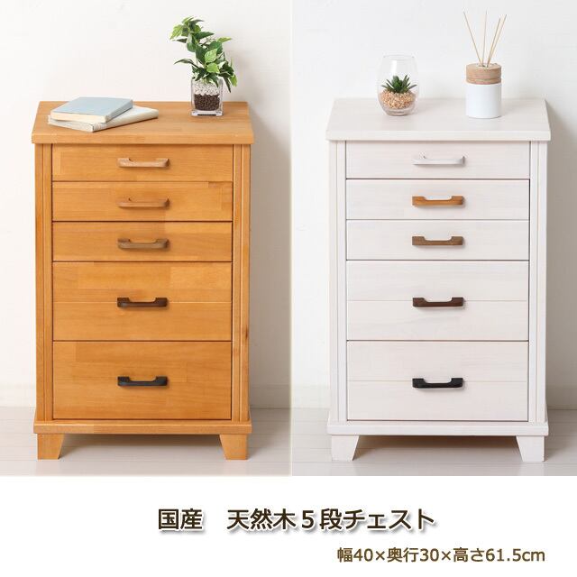 この国産 天然木5段チェストは、あなたの生活空間をスタイリッシュに演出し、収納力も充分なアイテムです!お部屋を整理整頓し、心地よい空間を作り出すお手伝いをいたします!