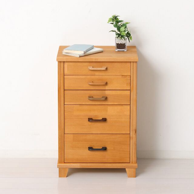 この国産 天然木5段チェストは、シンプルでありながら高い機能性を兼ね備えています!