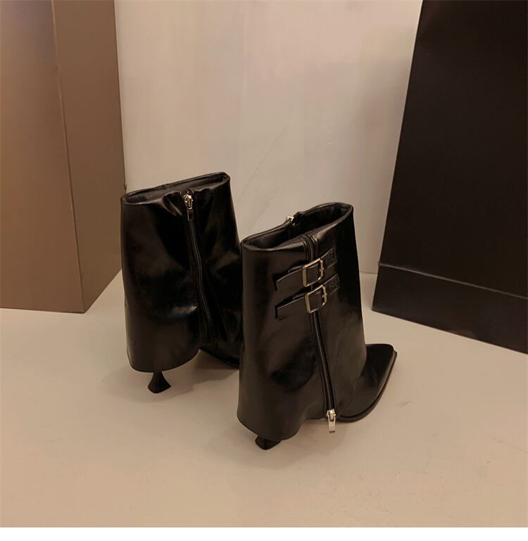「アレッ?こんなブーツあったっけ?」2025秋冬季 ハイヒール アンクルブーツ ポインテッドトゥ 短い筒 脚線美 ファッション靴