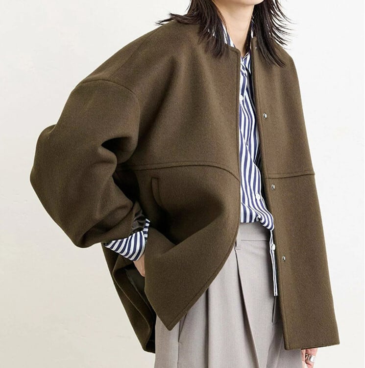 このコートは、体型を気にせずリラックスして着用できるゆったりシルエットで、日常使いや特別なシーンにもぴったりです。