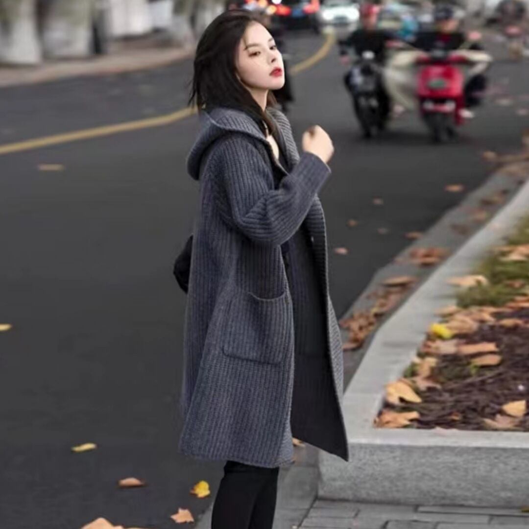 新作の『ニットカーディガン レディース ニットコート カーデ ロング丈 ゆったり 体型カバー フード付き』は、寒い季節にぴったりな一着です。フード付きのデザインが、かわいさと安心感を与え、長めの丈が体型をすっきりと見せてくれます。日常使いからおしゃれなお出かけまで、幅広く活躍するアイテムです!
