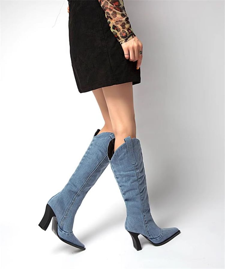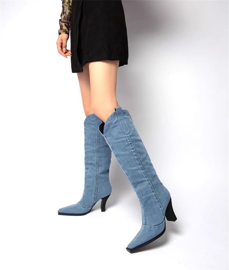 スリム ロングブーツ カウボーイブーツ /ポインテッドトゥ