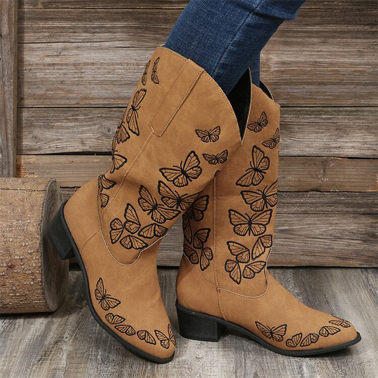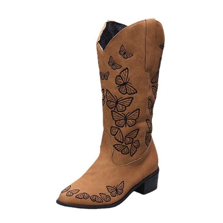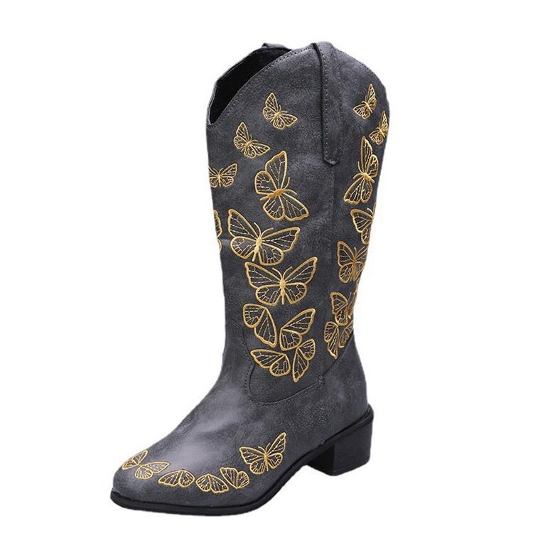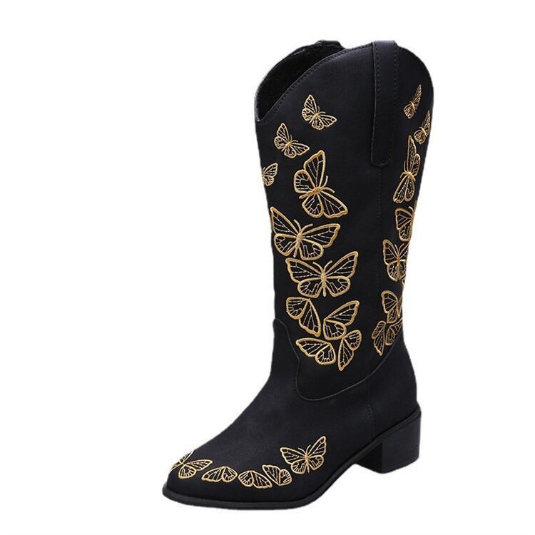 スパイク 快適である スクエアヒール ミドルブーツ 蝶 オールシーズン ビッグサイズ ナイトブーツ