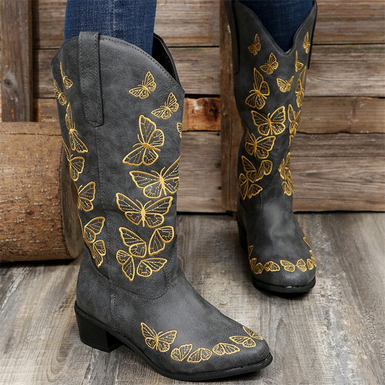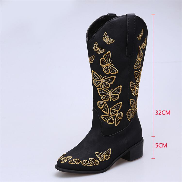 こちらのブーツは、優れた履き心地を追求し、柔らかい素材を使用しています。スクエアヒールのデザインが安定感を保ちながらも、シルエットを美しく演出します。蝶のモチーフが個性的で、おしゃれのアクセントとしても最適です。また、ビッグサイズ展開があるため、幅広い方にご利用いただけます。このブーツを身に着けて、特別な夜のお出かけを楽しんでみませんか?